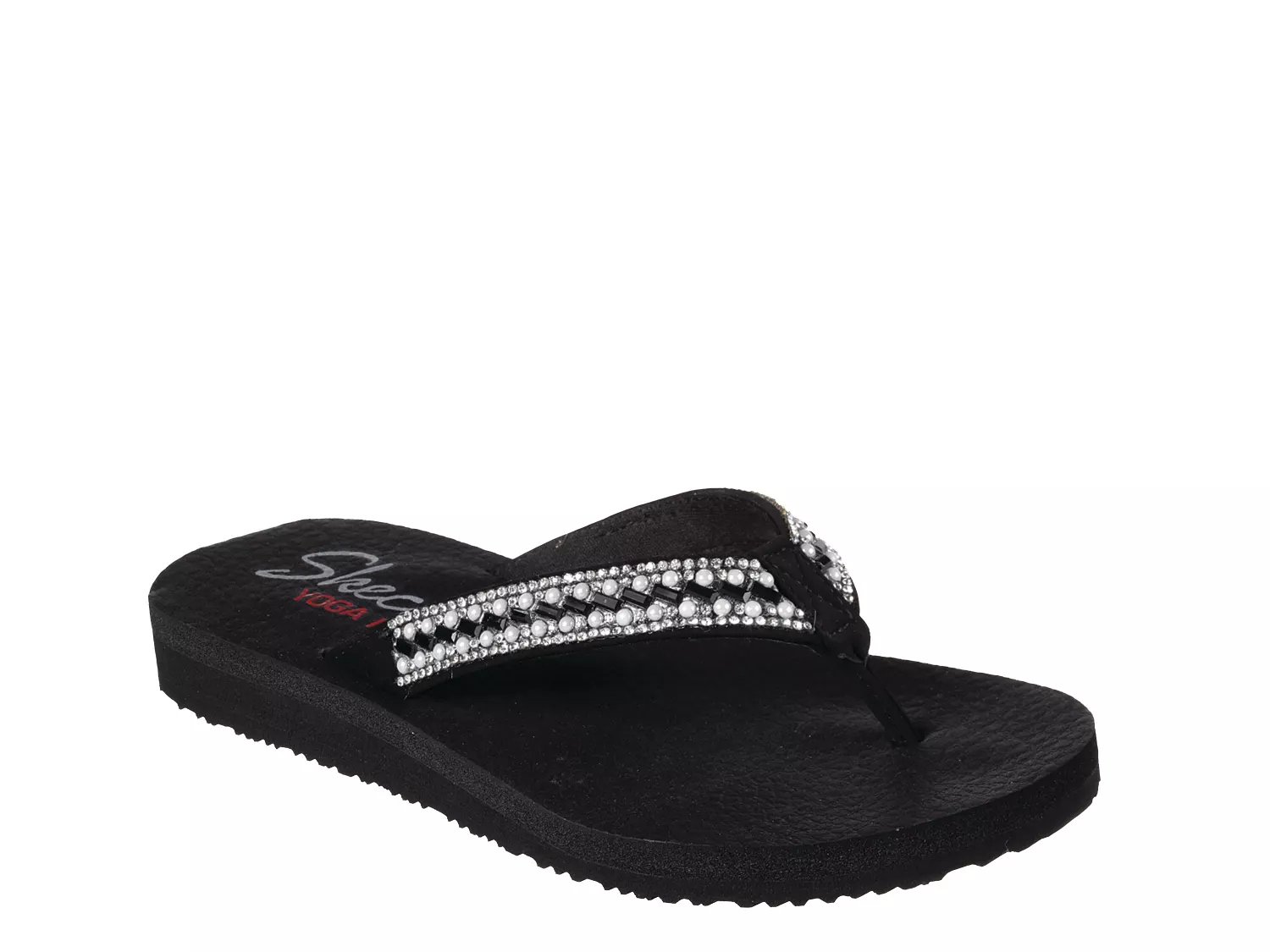Skechers women s meditation perfect 10 square rhinestone embellished thong flip flop.